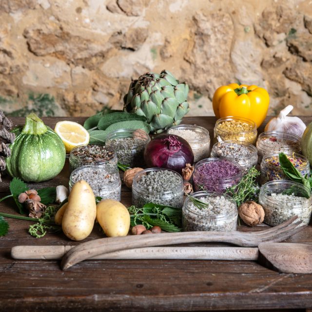 🧂 Sels aromatisés : sel Sud-Ouest (piment d’Espelette et poivrons séchés), sel forestier (cèpes et bolets), sel à l’ail des ours, sel gascon (Armagnac et pignon de pin), sel aux fleurs, sel fou, sel vin-échalotes.